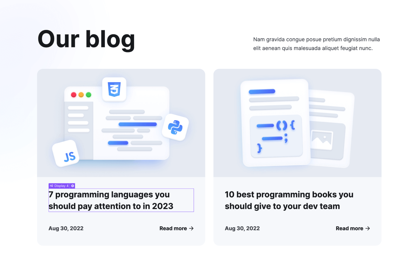 This content should be updated directly in the CMS section. This is meant to make it very easy for you to update it, as it's very likely it will need to be constantly updated (For example, adding a new blog post)