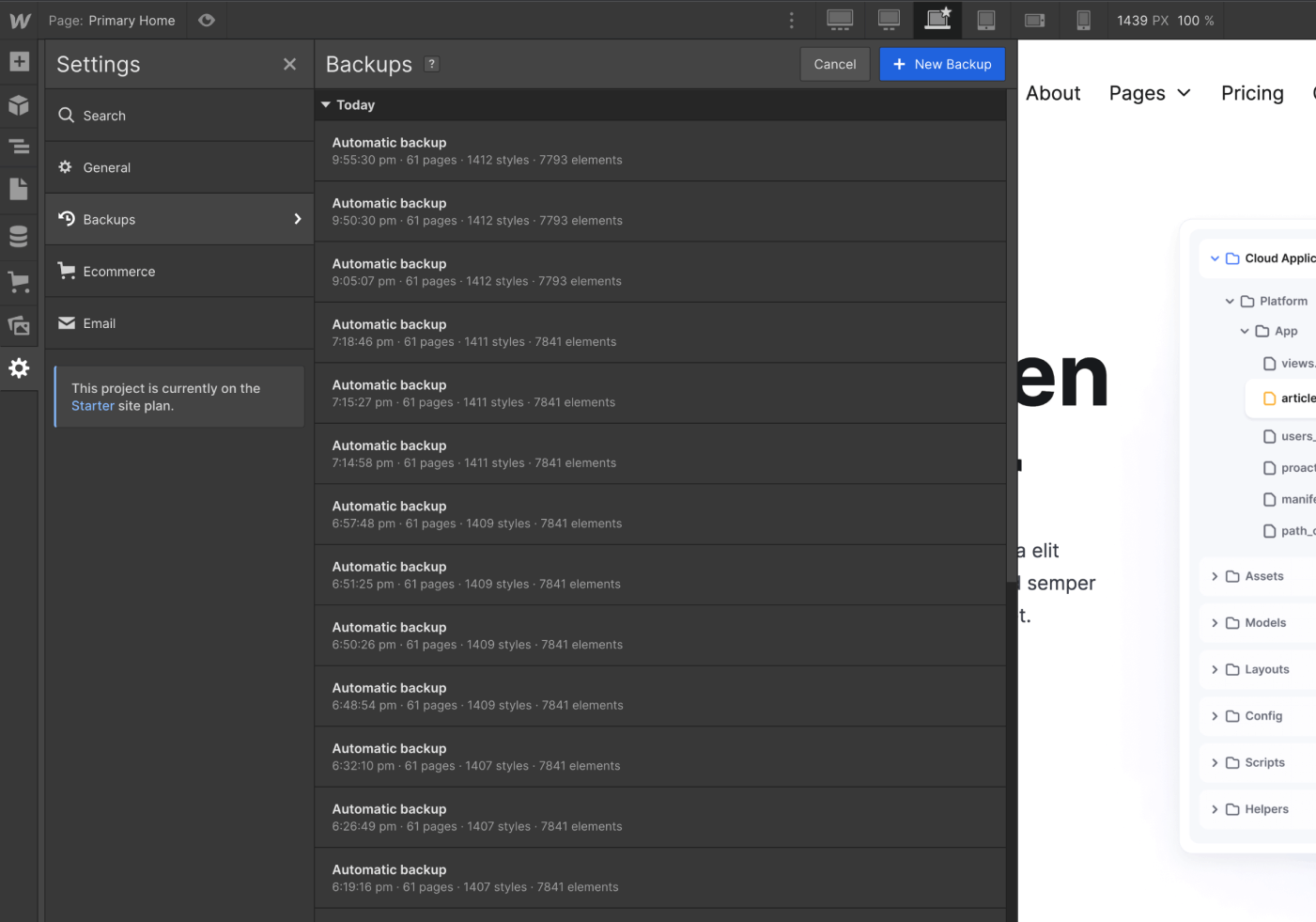 If something goes wrong, for example, if you are not liking where the website is going to, if you deleted some critical classes that were required to make the Template look nice, or if you just want to go to a previous version for any reason, you can always go to the Backups section.
